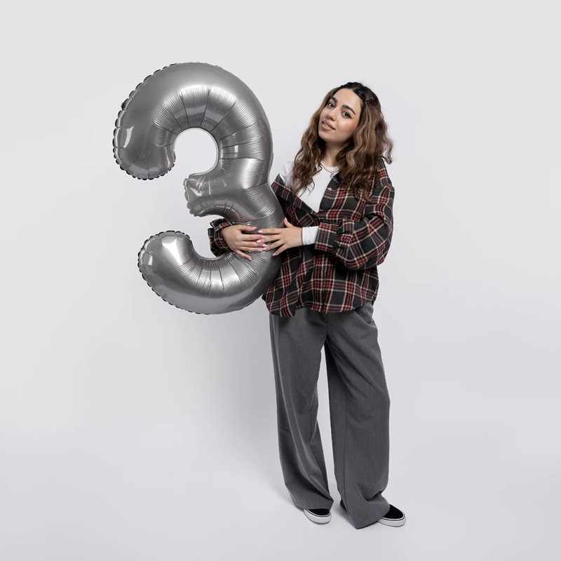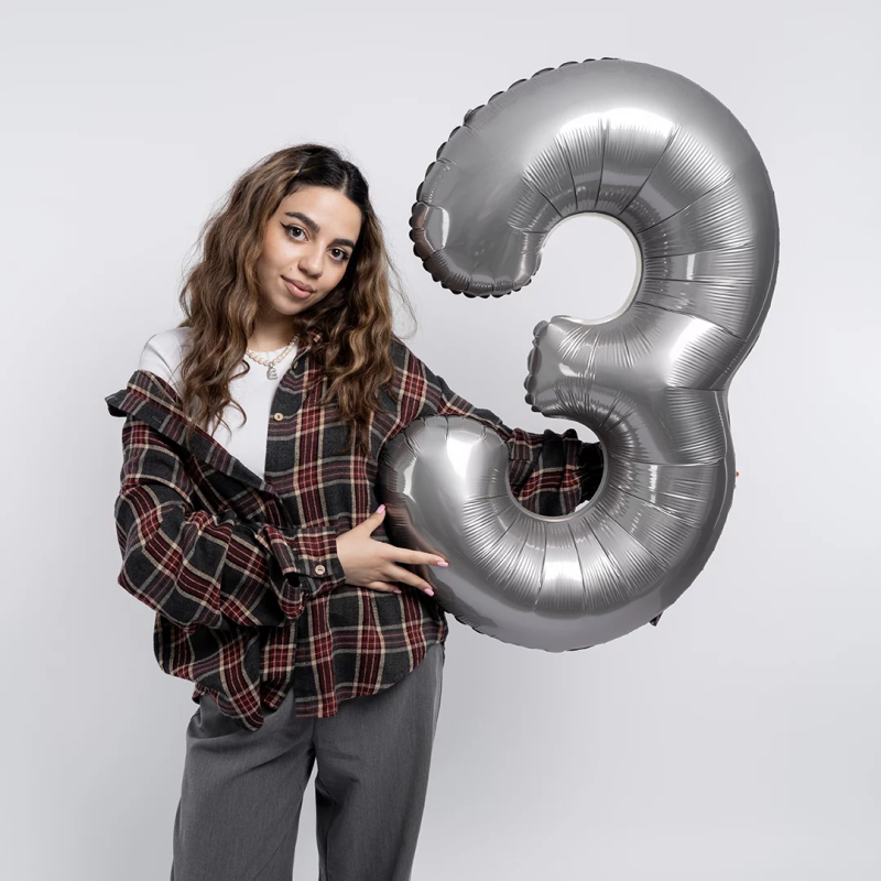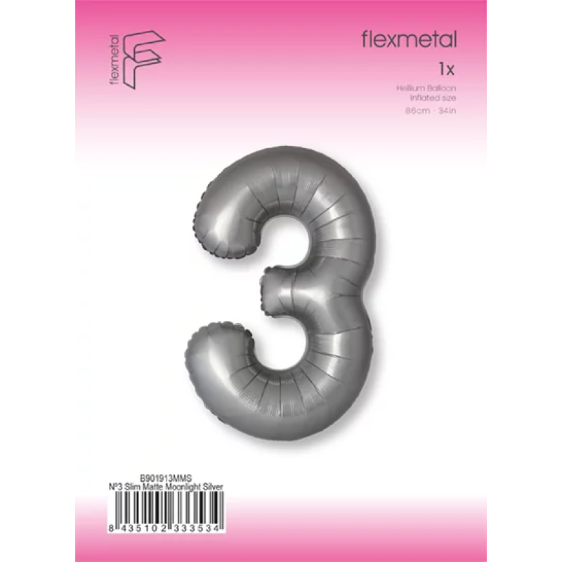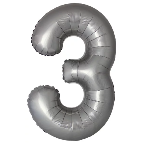 Шар (40''/102 см) Цифра, 3 Slim, Лунное Серебро, Матовый, 1 шт. в уп., B901913MMS