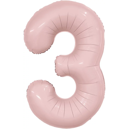 Шар (40''/102 см) Цифра, 3 Slim, Пыльная роза, 1 шт. в уп., 224593