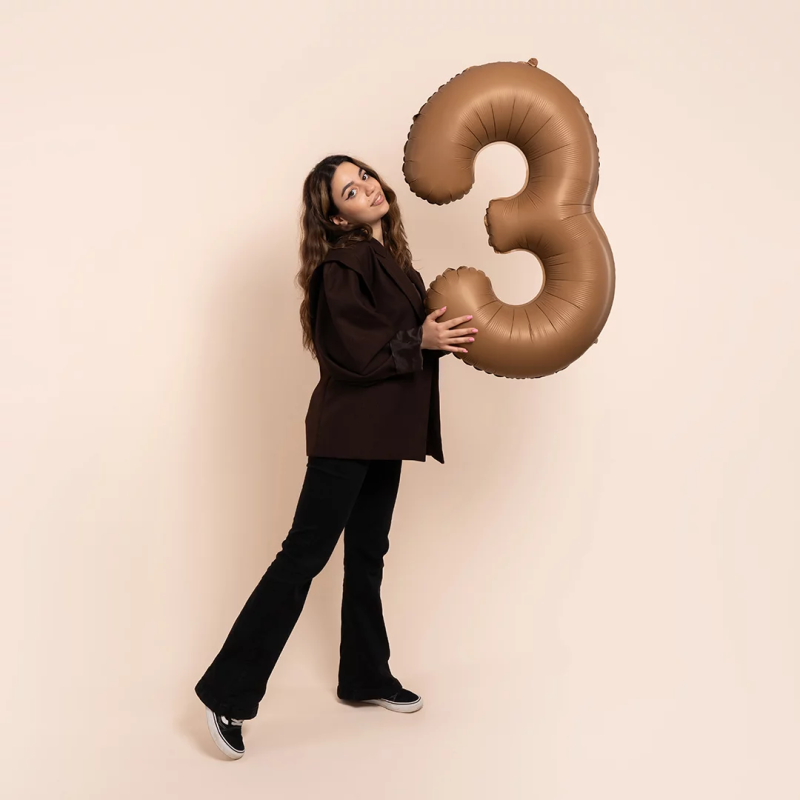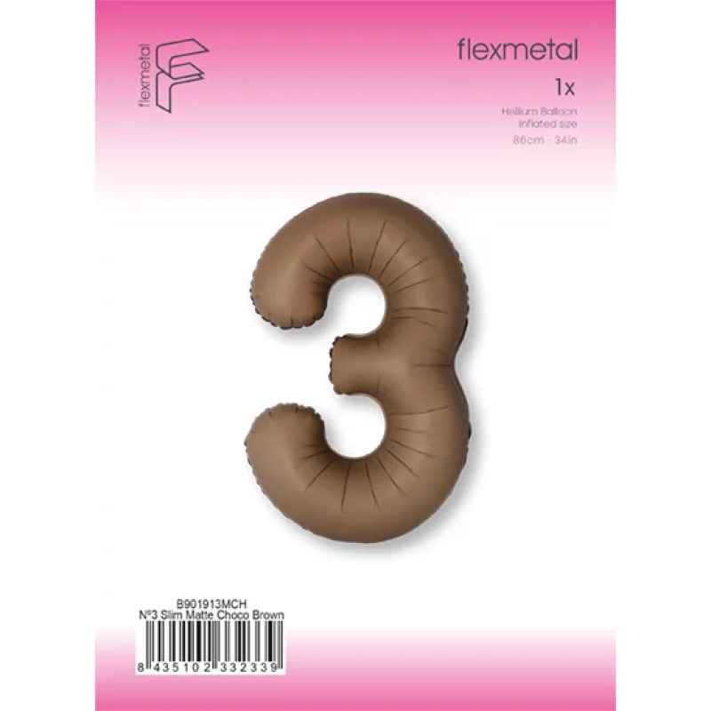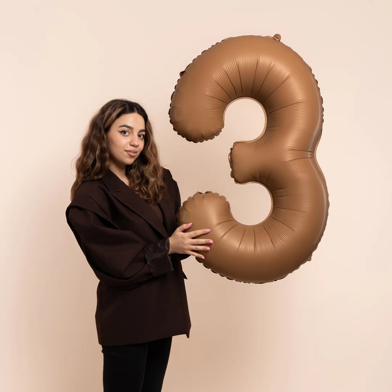 Шар (40''/102 см) Цифра, 3 Slim, Шоколад, Матовый, 1 шт. в уп., B901913MCH