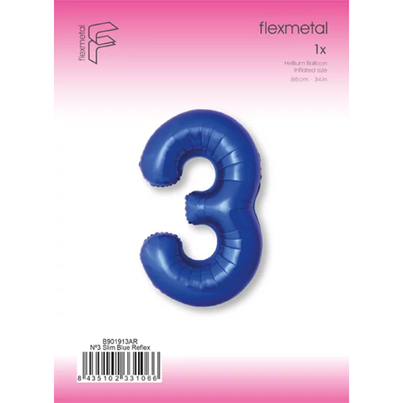 Шар (40''/102 см) Цифра, 3 Slim, Синий хром, Металлик, 1 шт. в уп., B901913AR