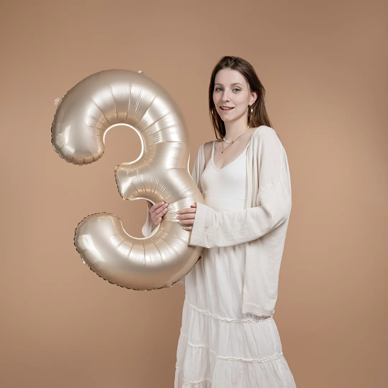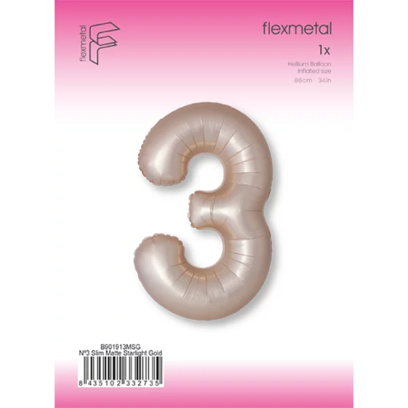 Шар (40''/102 см) Цифра, 3 Slim, Звездное Золото, Матовый, 1 шт. в уп., B901913MSG