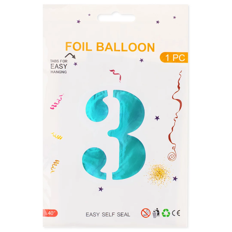Шар (40''/102 см) Цифра, 3, Тиффани, Металлик, 1 шт. в уп., 24233