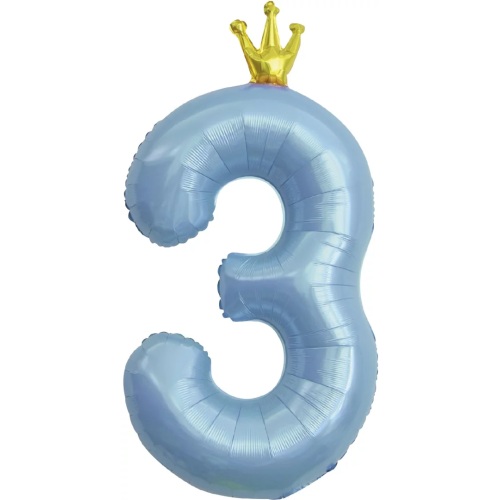 Шар (40''/102 см) Цифра, 3 Золотая корона, Голубой, 1 шт. в уп., 131183