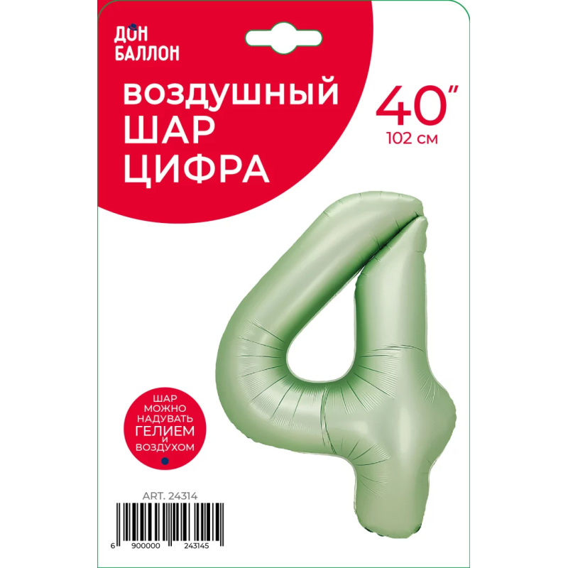 Шар (40''/102 см) Цифра, 4, Авокадо, Сатин, 1 шт. в уп., 24314