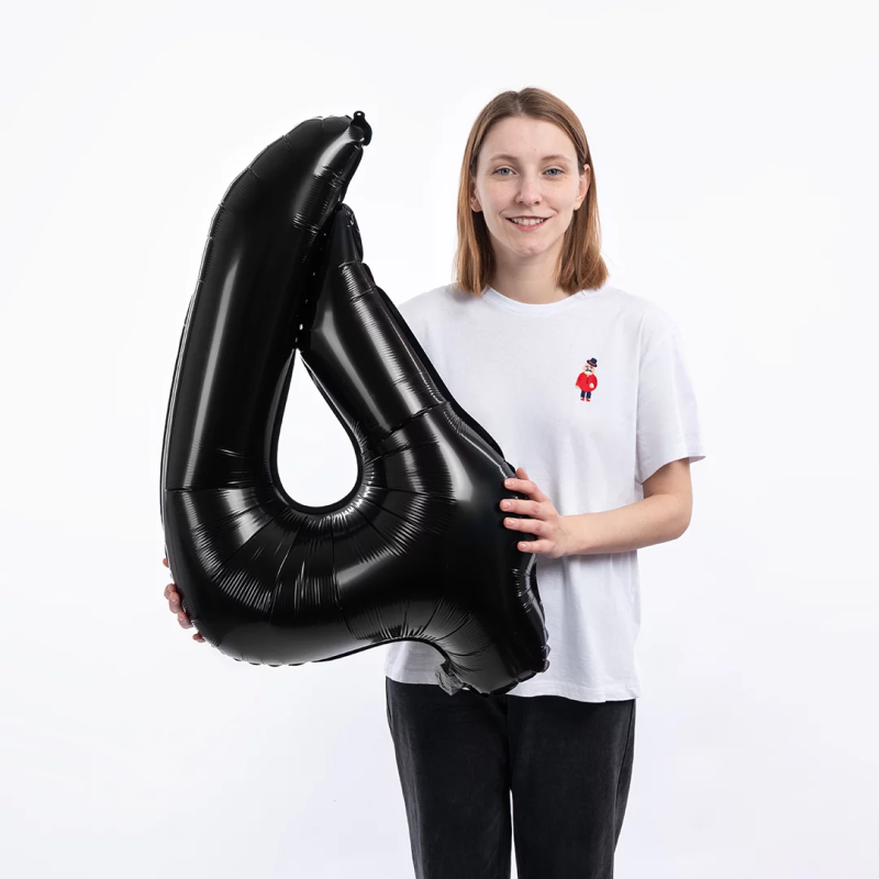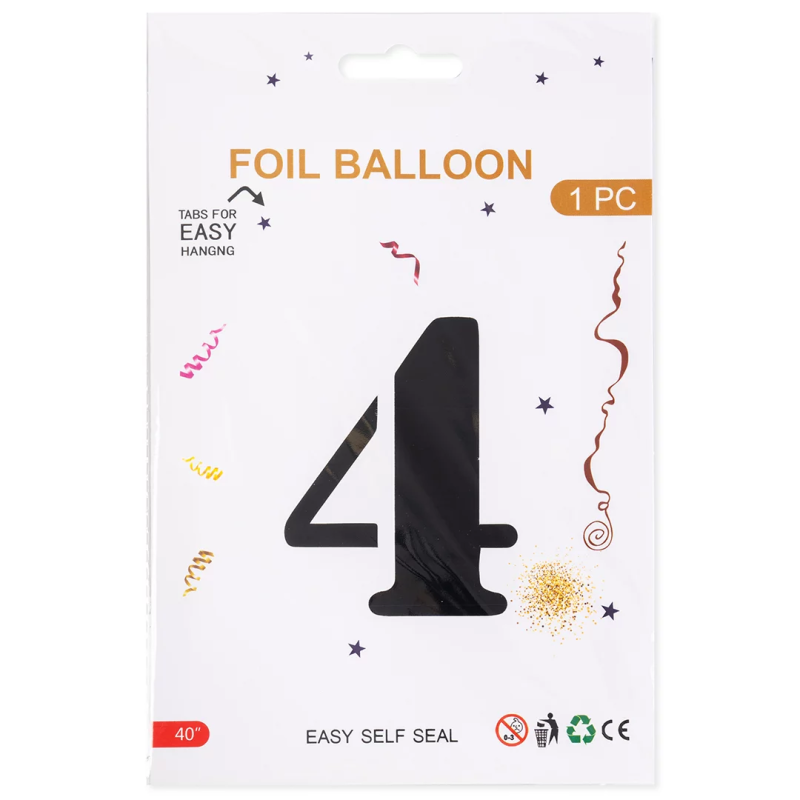 Шар (40''/102 см) Цифра, 4, Черный, Металлик, 1 шт. в уп., 27354