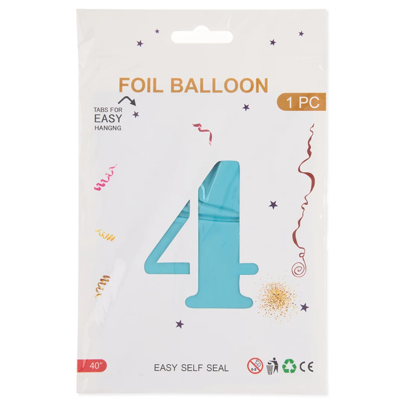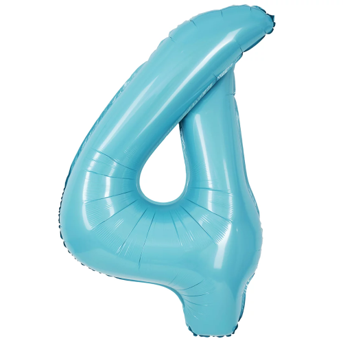 Шар (40''/102 см) Цифра, 4, Голубой, Матовый, 1 шт. в уп., 24114