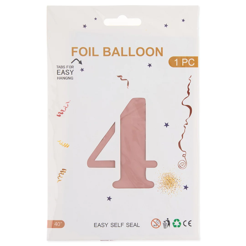 Шар (40''/102 см) Цифра, 4, Пыльная роза, Сатин, 1 шт. в уп., 24274