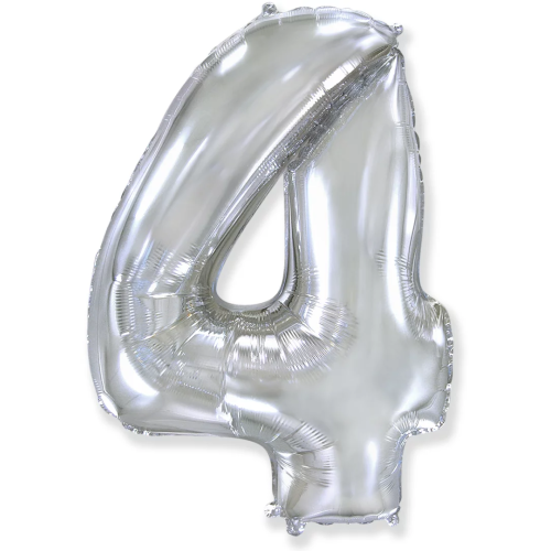 Шар (40''/102 см) Цифра, 4, Серебро, 1 шт., 901764P
