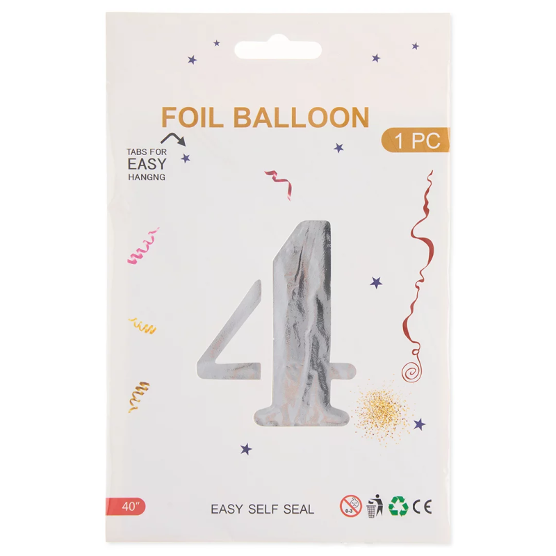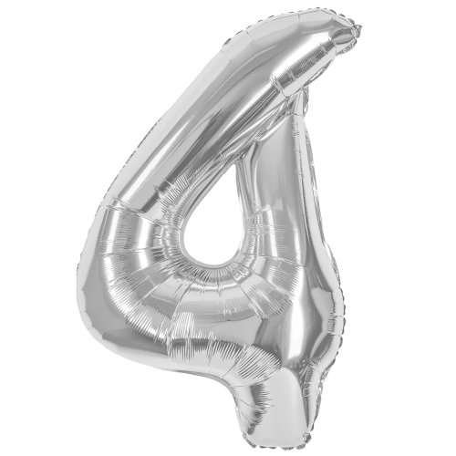 Шар (40''/102 см) Цифра, 4, Серебро, Металлик, 1 шт. в уп., 24094