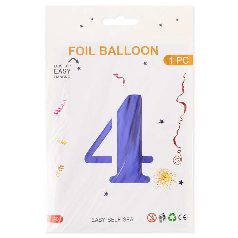 Шар (40''/102 см) Цифра, 4, Сиреневый, Металлик, 1 шт. в уп., 24214