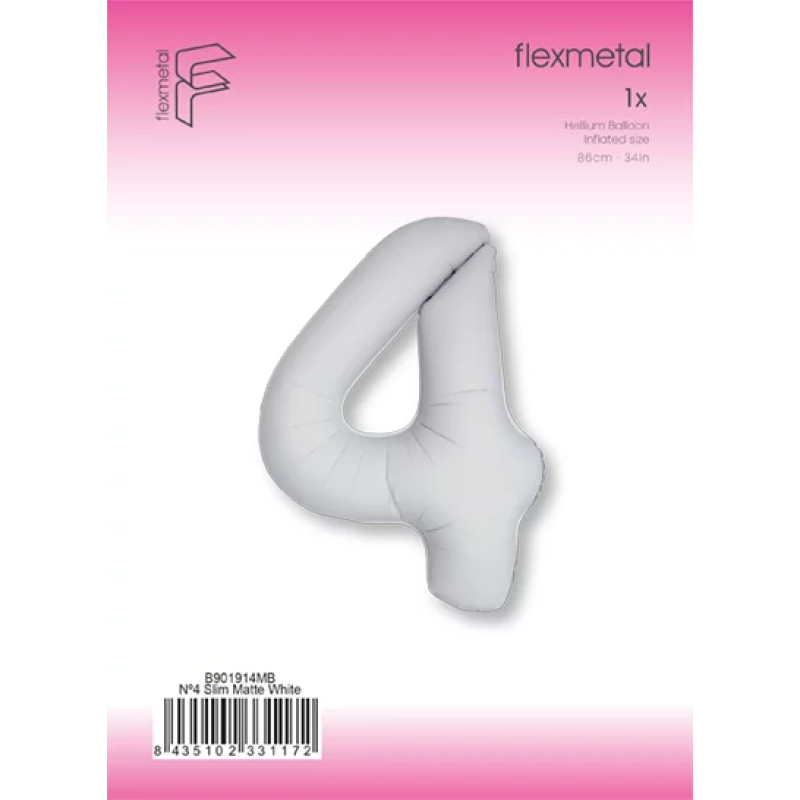 Шар (40''/102 см) Цифра, 4 Slim, Белый, Матовый, 1 шт. в уп., B901914MB