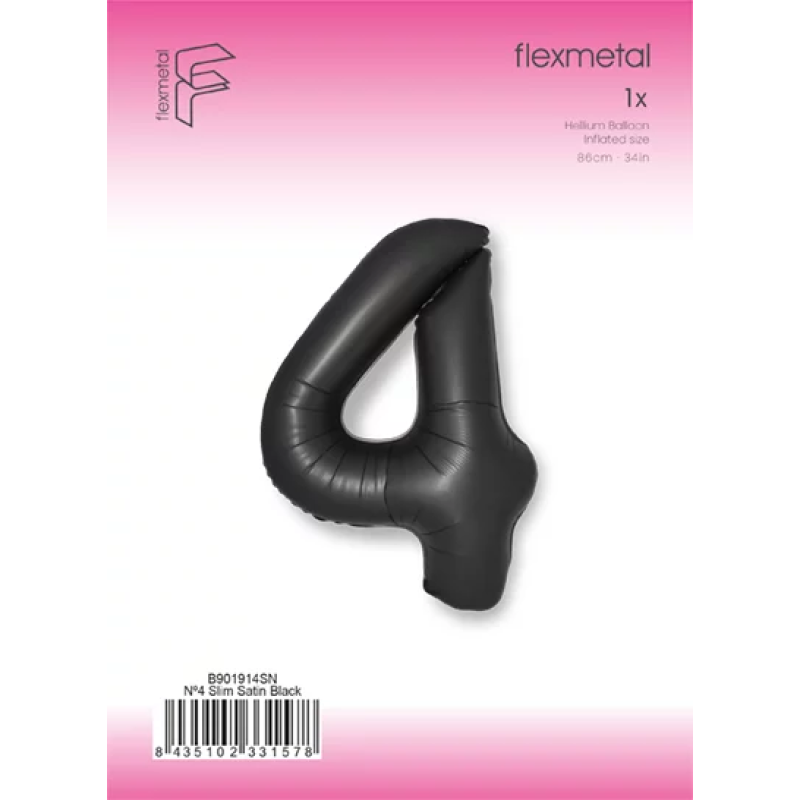 Шар (40''/102 см) Цифра, 4 Slim, Черный, Сатин, 1 шт. в уп., B901914SN