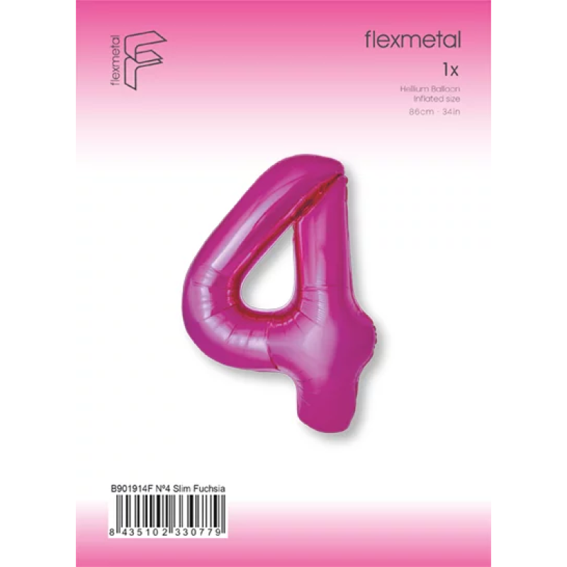 Шар (40''/102 см) Цифра, 4 Slim, Фуше, Металлик, 1 шт. в уп., B901914F
