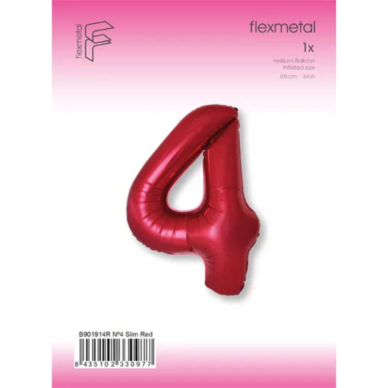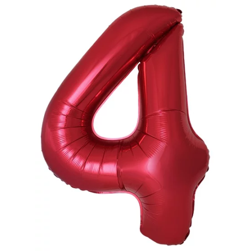 Шар (40''/102 см) Цифра, 4 Slim, Красный, Металлик, 1 шт. в уп., B901914R