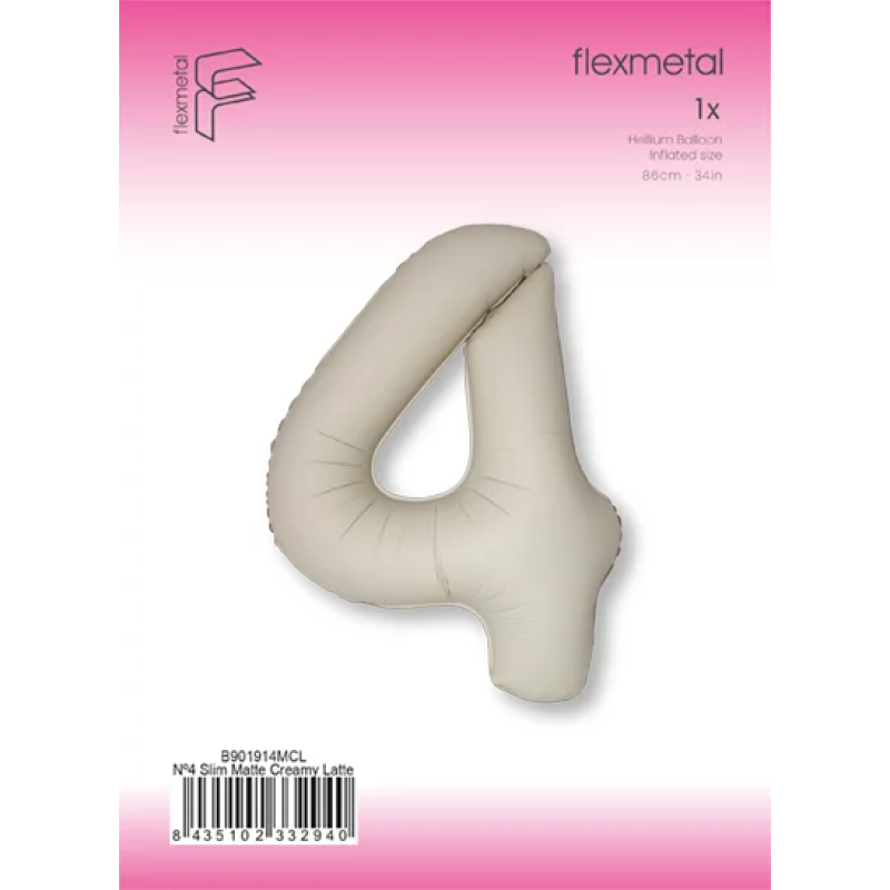 Шар (40''/102 см) Цифра, 4 Slim, Кремовый Латте, Матовый, 1 шт. в уп., B901914MCL