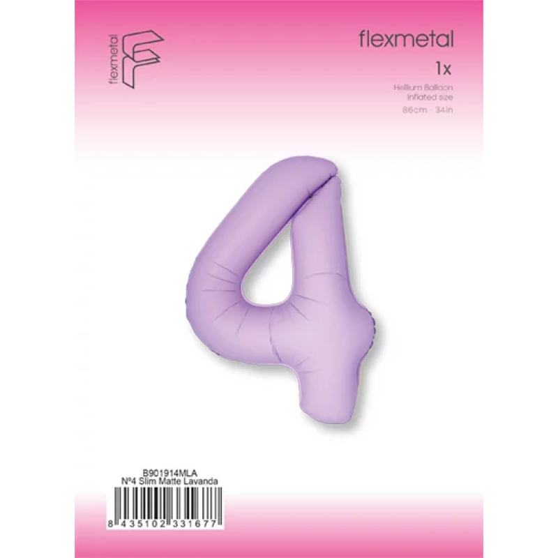 Шар (40''/102 см) Цифра, 4 Slim, Лаванда, Матовый, 1 шт. в уп., B901914MLA