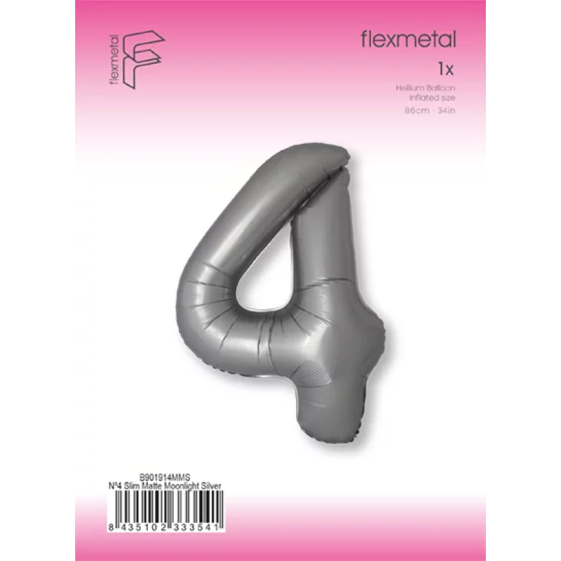 Шар (40''/102 см) Цифра, 4 Slim, Лунное Серебро, Матовый, 1 шт. в уп., B901914MMS