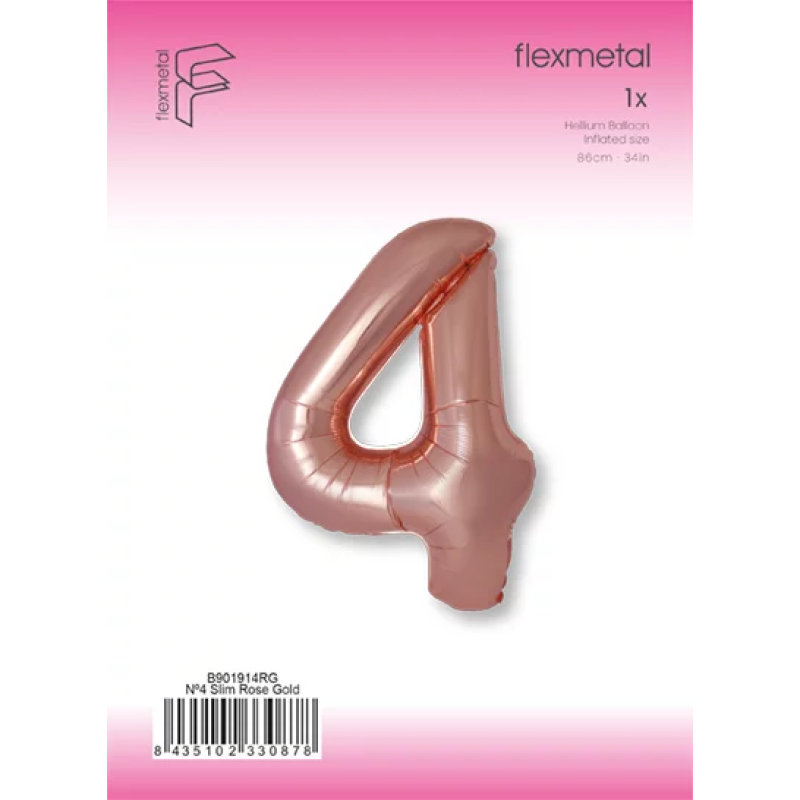 Шар (40''/102 см) Цифра, 4 Slim, Розовое Золото, Металлик, 1 шт. в уп., B901914RG