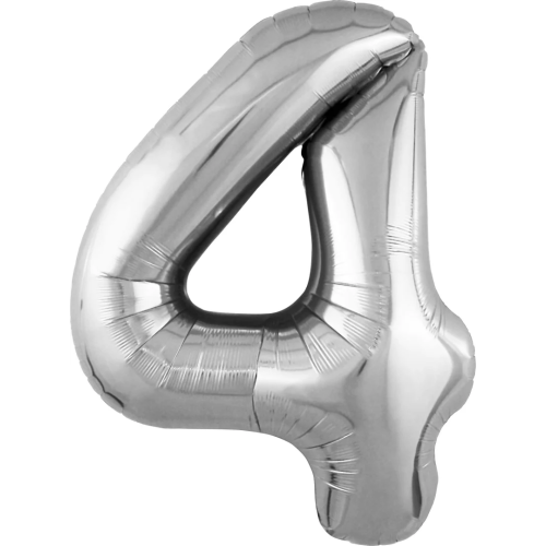 Шар (40''/102 см) Цифра, 4 Slim, Серебро, 1 шт. в уп., 754535