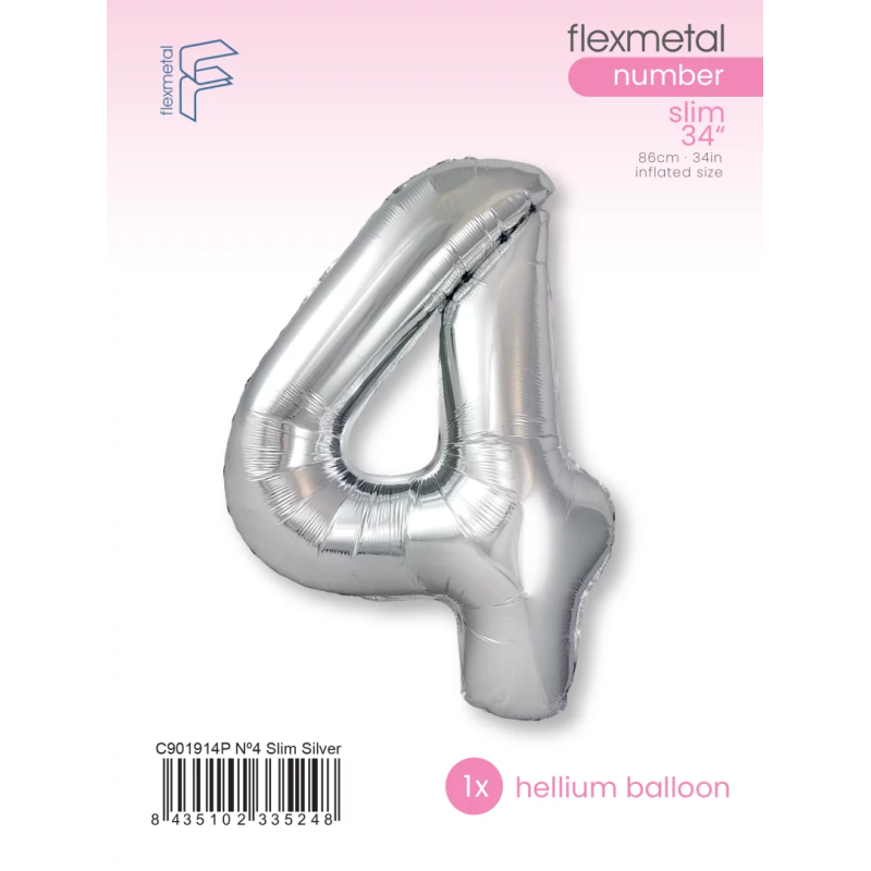 Шар (40''/102 см) Цифра, 4 Slim, Серебро, 1 шт. в уп., C901914P
