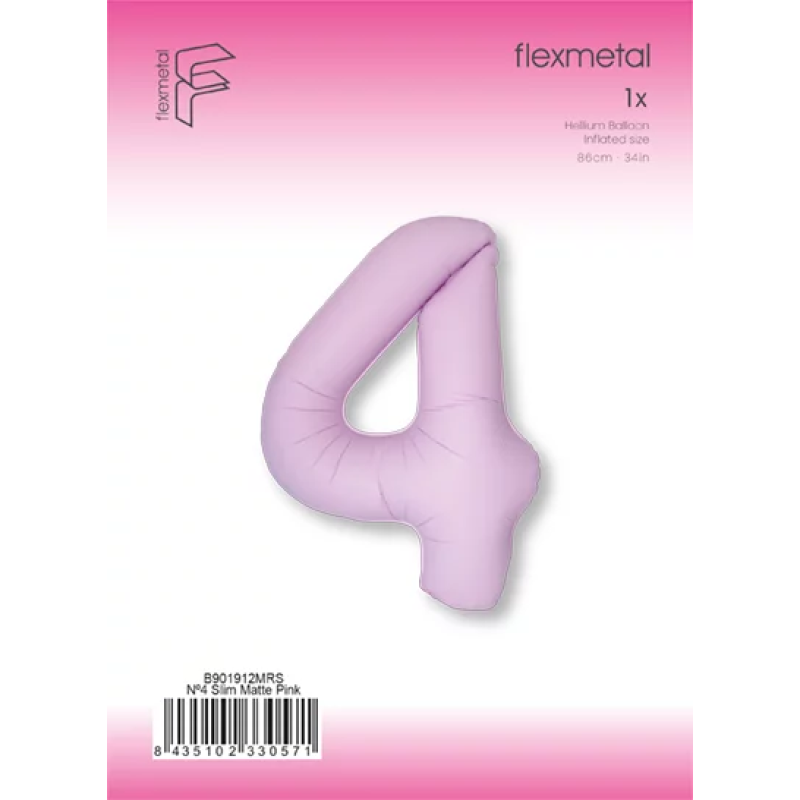 Шар (40''/102 см) Цифра, 4 Slim, Светло-розовый, Матовый, 1 шт. в уп., B901914MRS
