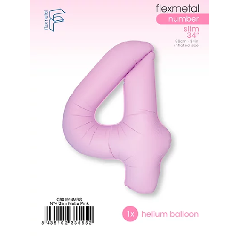 Шар (40''/102 см) Цифра, 4 Slim, Светло-розовый, Матовый, 1 шт. в уп., C901914MRS