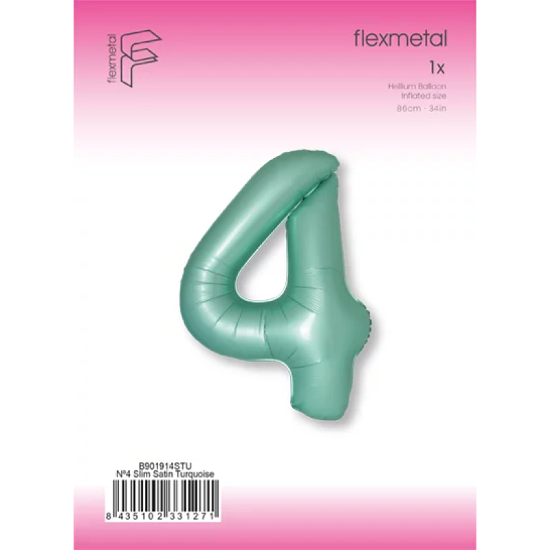 Шар (40''/102 см) Цифра, 4 Slim, Тиффани, Сатин, 1 шт. в уп., B901914STU