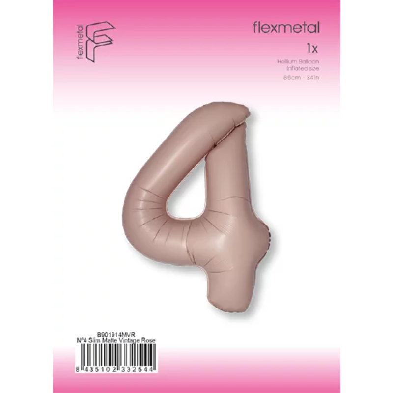 Шар (40''/102 см) Цифра, 4 Slim, Винтажная роза, Матовый, 1 шт. в уп., B901914MVR