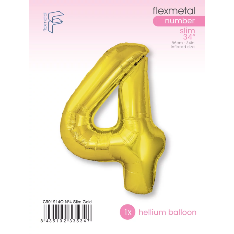 Шар (40''/102 см) Цифра, 4 Slim, Золото, 1 шт. в уп., C901914O