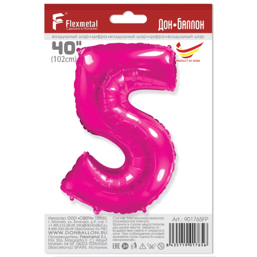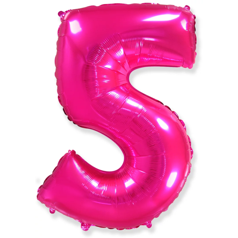 Шар (40''/102 см) Цифра, 5, Фуше, 1 шт. в уп., 901765FP