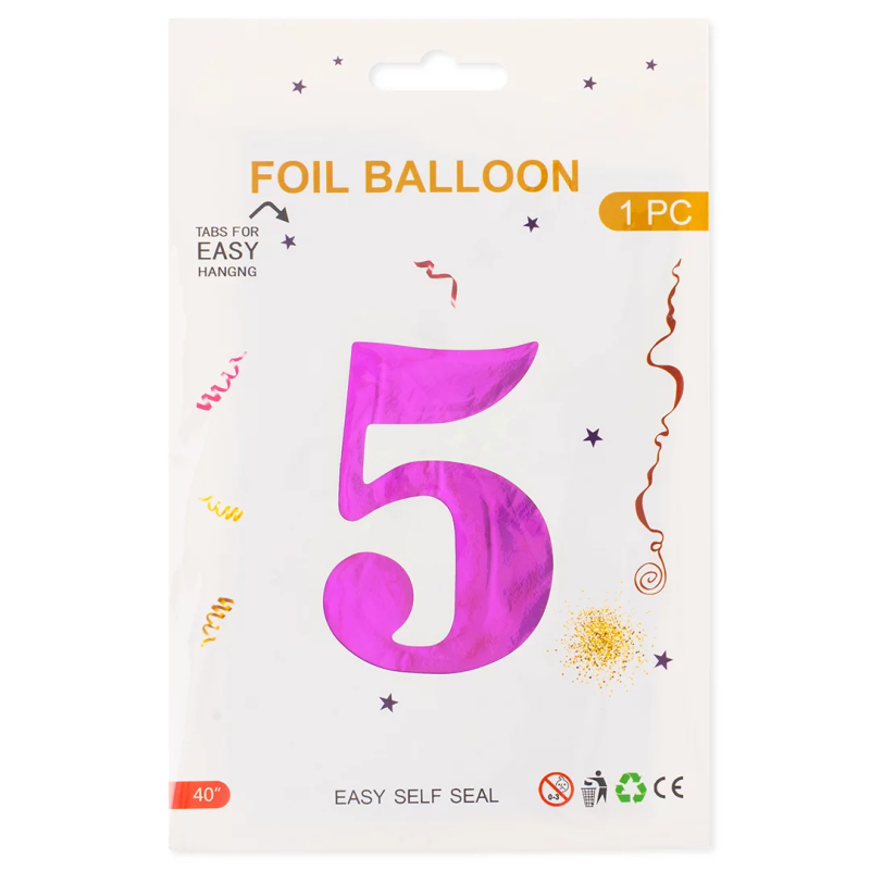 Шар (40''/102 см) Цифра, 5, Фуше, Металлик, 1 шт. в уп., 24225