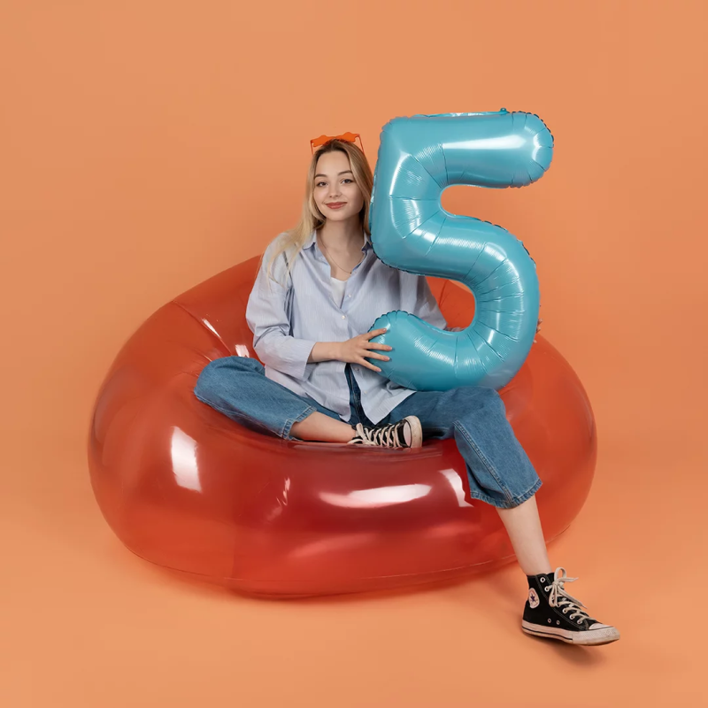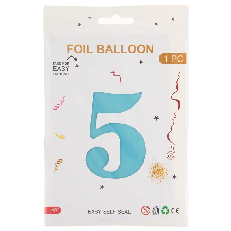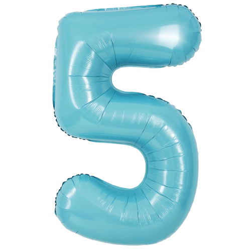 Шар (40''/102 см) Цифра, 5, Голубой, Матовый, 1 шт. в уп., 24115