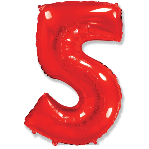 Шар (40''/102 см) Цифра, 5, Красный, 1 шт., 901765R