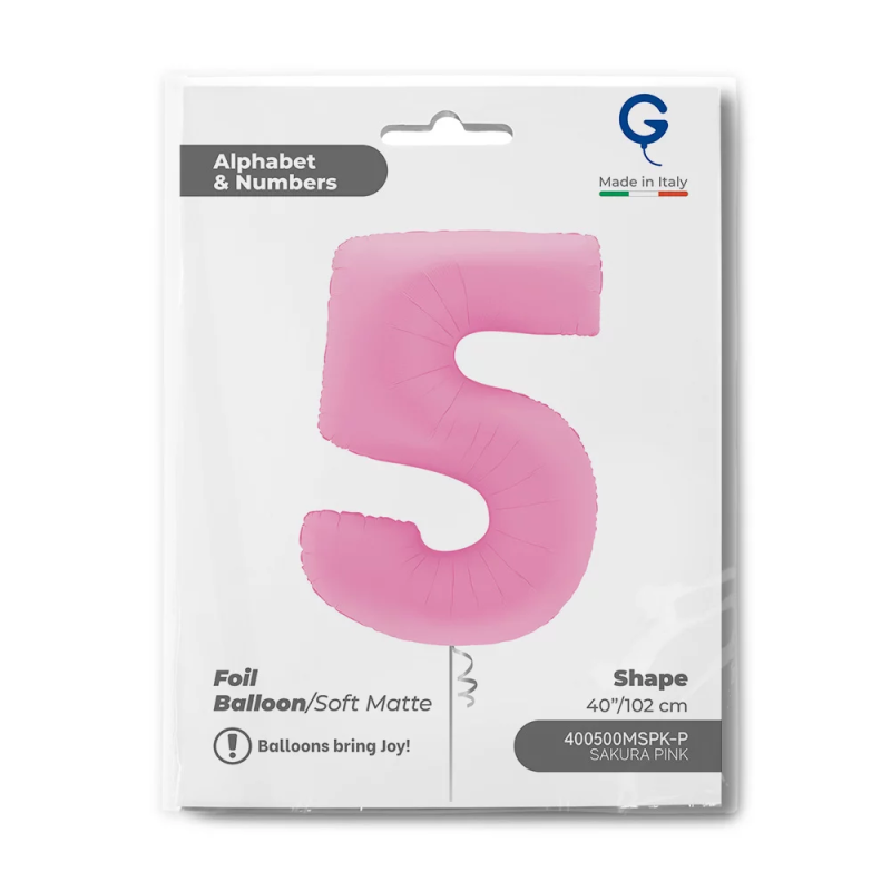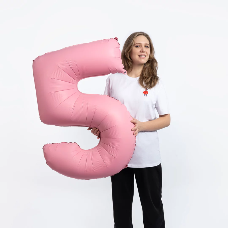 Шар (40''/102 см) Цифра, 5, Розовая Сакура, Матовый, 1 шт. в уп., 400500MSPK-P