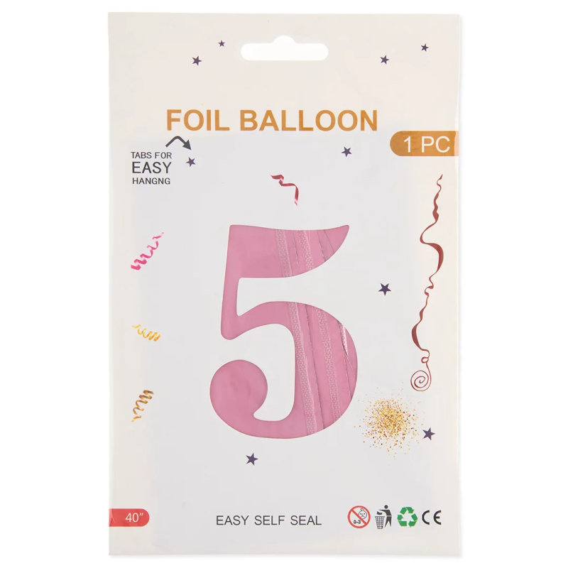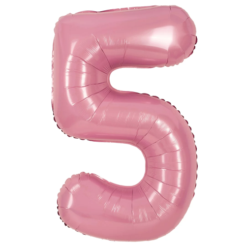 Шар (40''/102 см) Цифра, 5, Розовый, Матовый, 1 шт. в уп., 24105