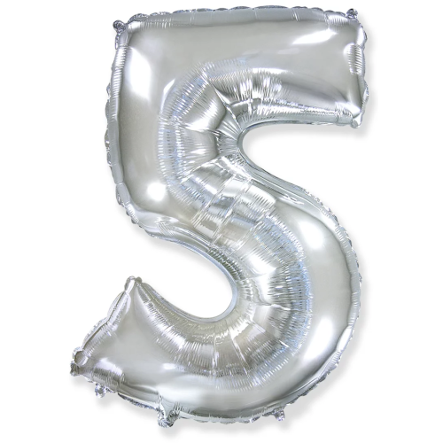 Шар (40''/102 см) Цифра, 5, Серебро, 1 шт. в уп., C901765P