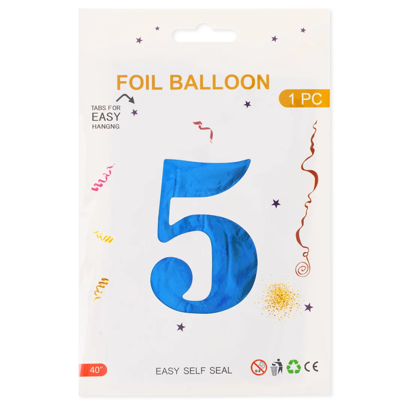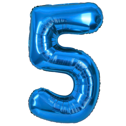 Шар (40''/102 см) Цифра, 5, Синий, Металлик, 1 шт. в уп., 26265