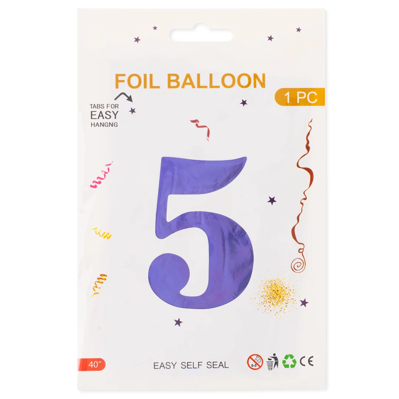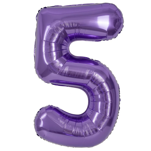 Шар (40''/102 см) Цифра, 5, Сиреневый, Металлик, 1 шт. в уп., 24215