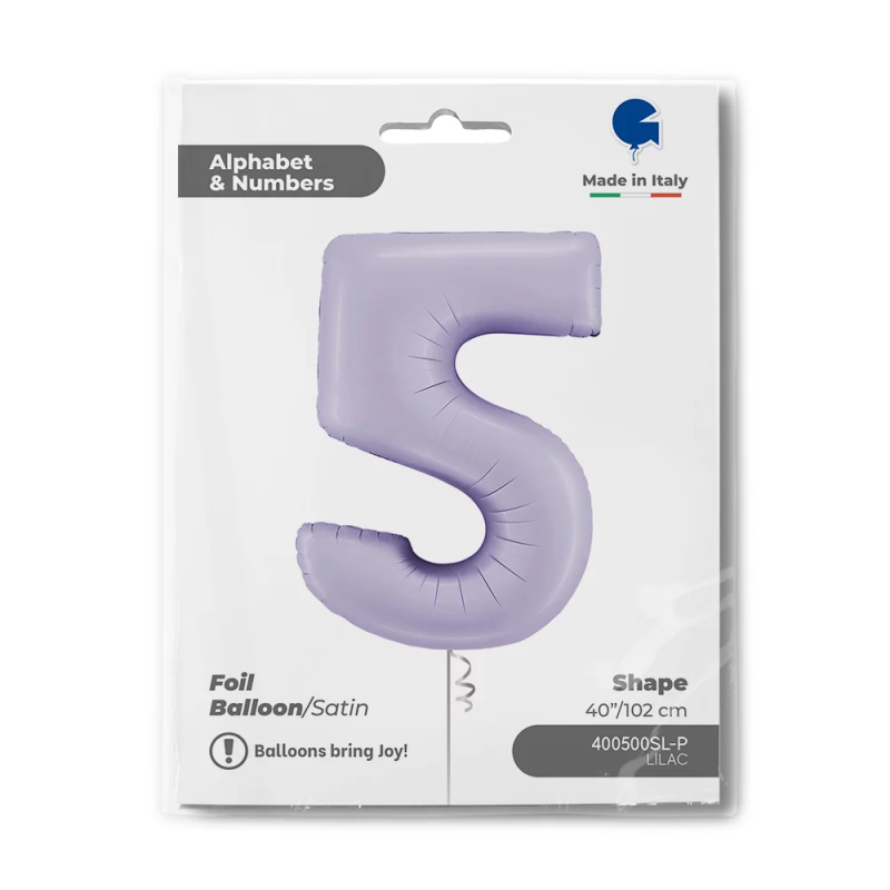 Шар (40''/102 см) Цифра, 5, Сиреневый, Сатин, 1 шт. в уп., 400500SL-P
