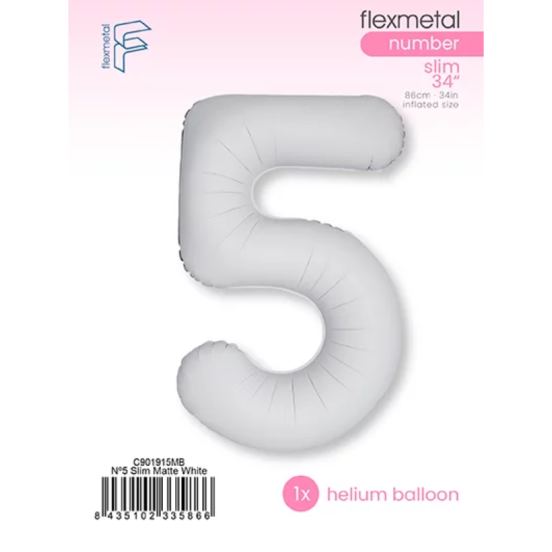 Шар (40''/102 см) Цифра, 5 Slim, Белый, Матовый, 1 шт. в уп., C901915MB