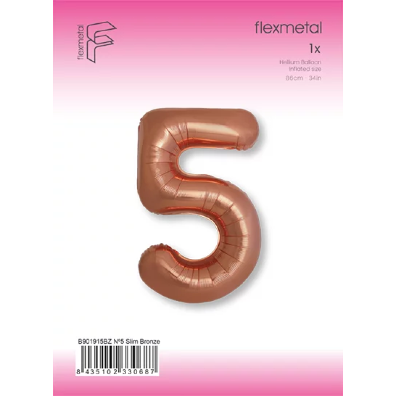 Шар (40''/102 см) Цифра, 5 Slim, Бронза, Металлик, 1 шт. в уп., B901915BZ
