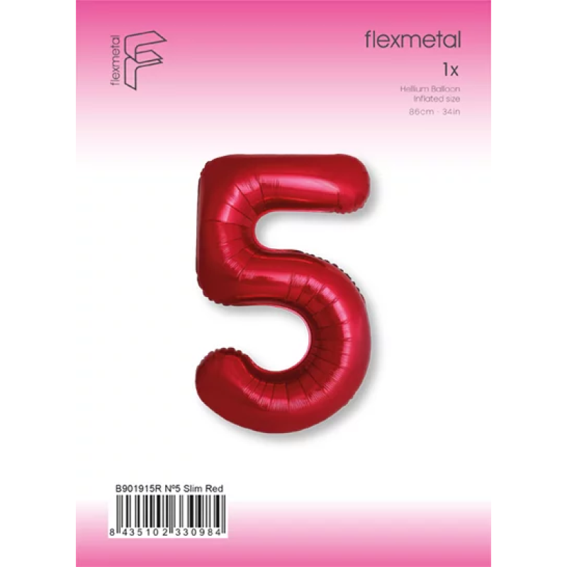 Шар (40''/102 см) Цифра, 5 Slim, Красный, Металлик, 1 шт. в уп., B901915R