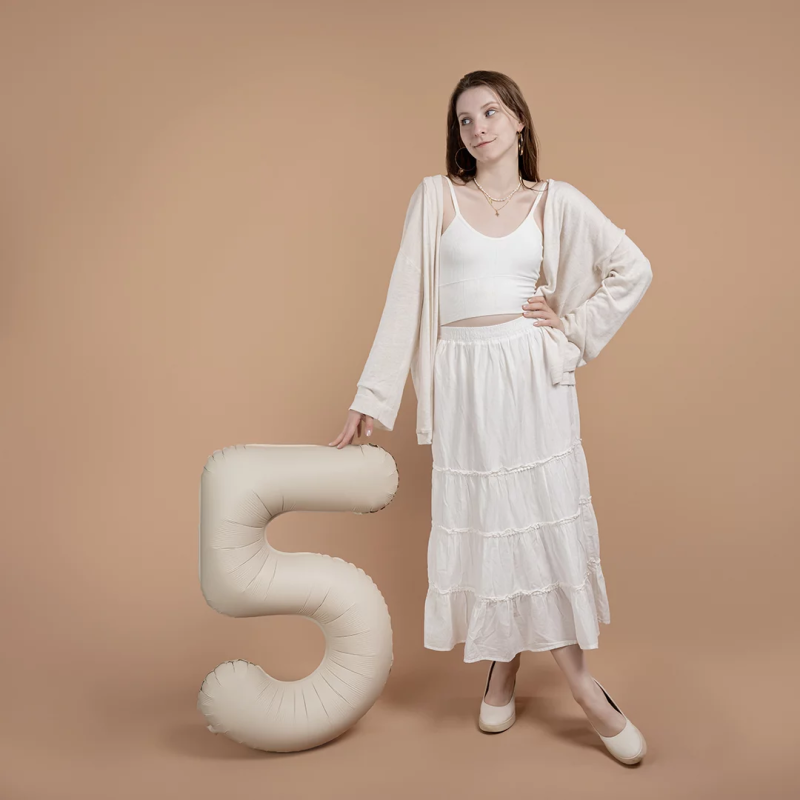 Шар (40''/102 см) Цифра, 5 Slim, Кремовый Латте, Матовый, 1 шт., 901915MCL