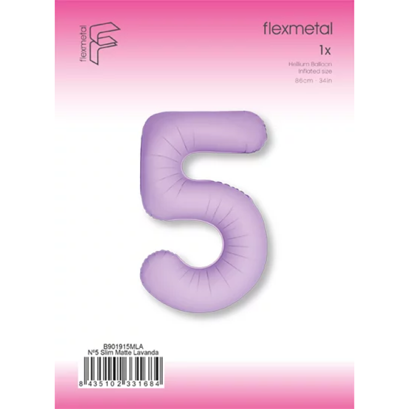Шар (40''/102 см) Цифра, 5 Slim, Лаванда, Матовый, 1 шт. в уп., B901915MLA