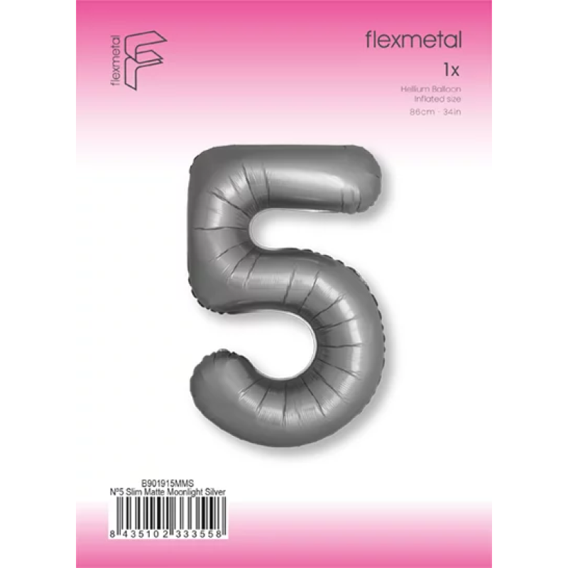 Шар (40''/102 см) Цифра, 5 Slim, Лунное Серебро, Матовый, 1 шт. в уп., B901915MMS