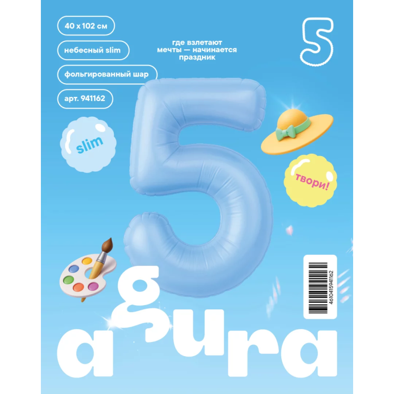 | Линейка | Agura Шар (40''/102 см) Цифра, Slim, Небесный |