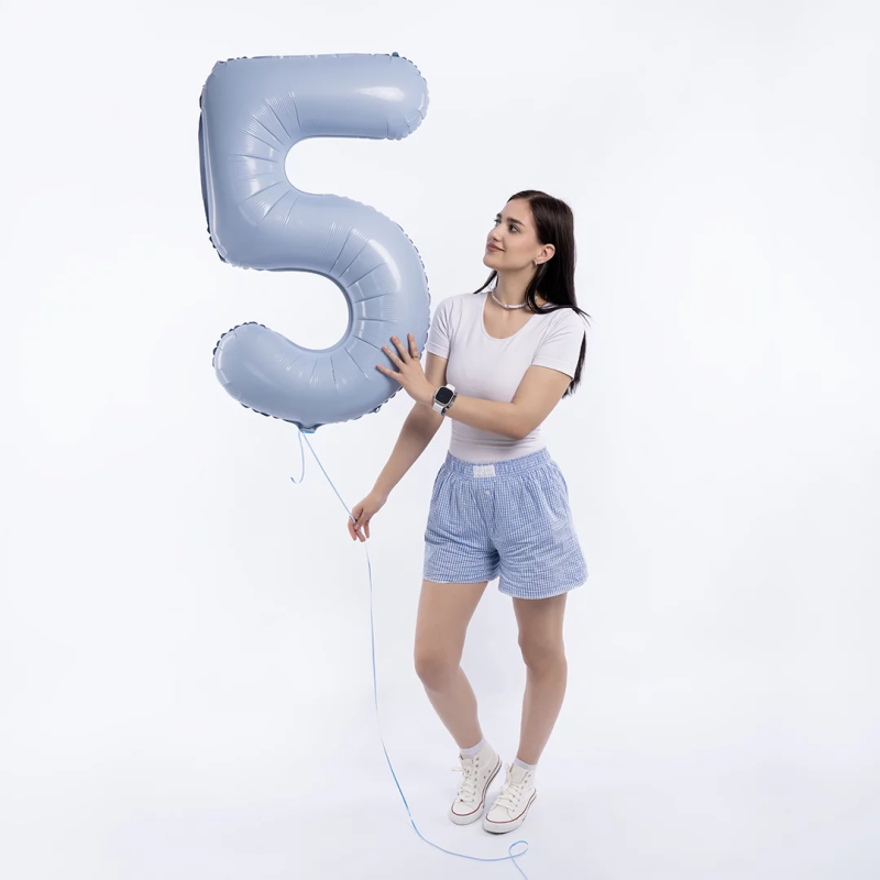 Шар (40''/102 см) Цифра, 5 Slim, Небесный, 1 шт. в уп., 941162