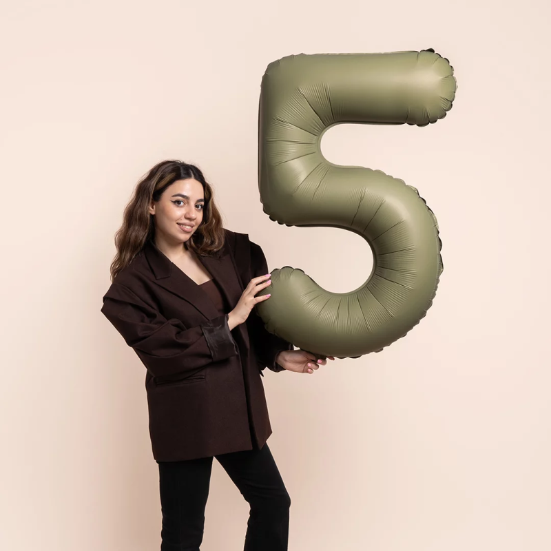 Шар (40''/102 см) Цифра, 5 Slim, Оливковый, Матовый, 1 шт., 901915MOL