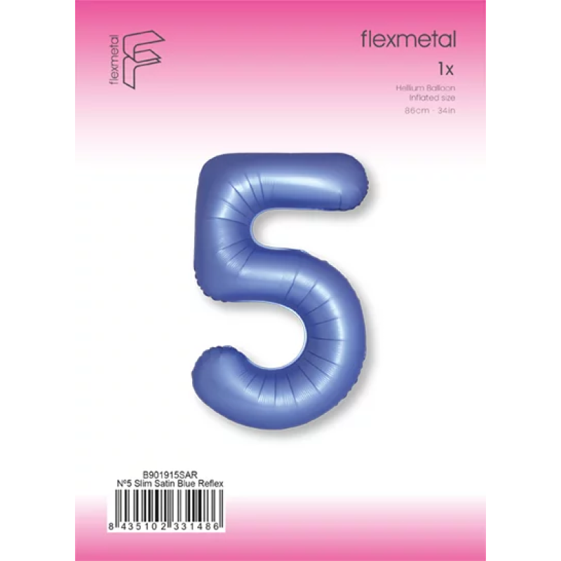 Шар (40''/102 см) Цифра, 5 Slim, Синий хром, Сатин, 1 шт. в уп., B901915SAR