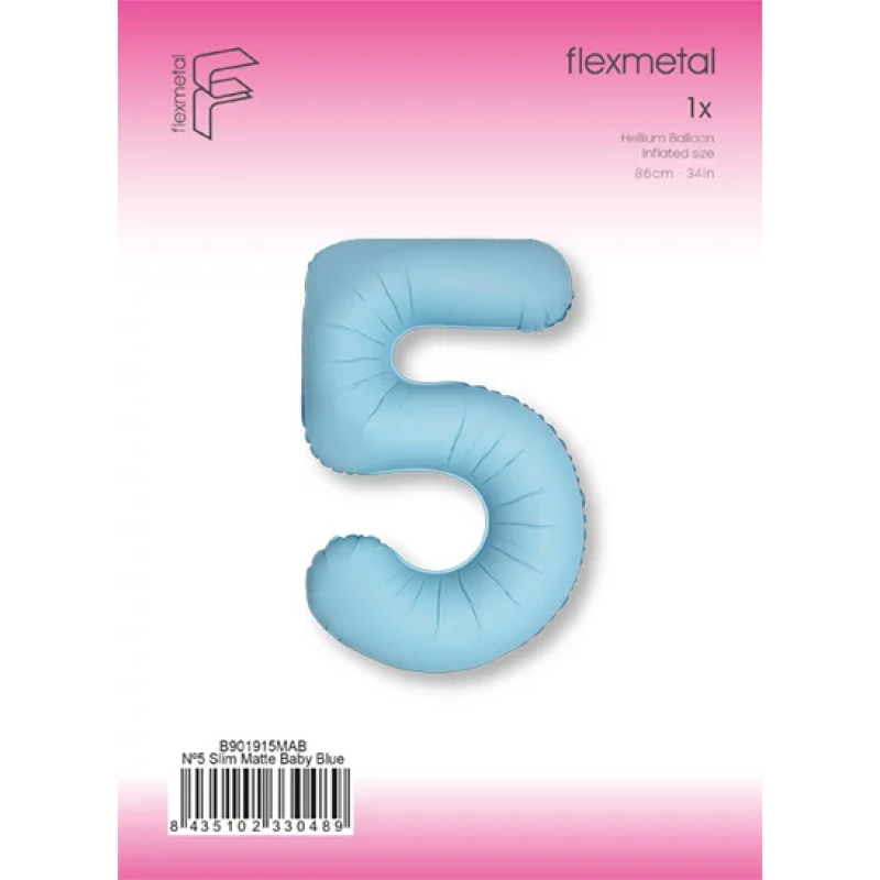 Шар (40''/102 см) Цифра, 5 Slim, Светло-голубой, Матовый, 1 шт. в уп., B901915MAB